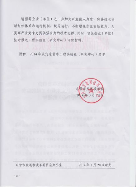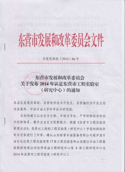 3月20日,东营市发展和改革委员会下发文件,认定21个单位为2014年度工程实验室(研究中心),我院井控工程研究中心为其中之一。