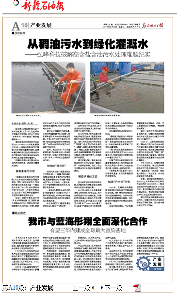 通过科技攻关破解高含盐含油污水,弘峰科技不仅为油田环保做出了积极贡献,还为城市建设做出了巨大贡献。